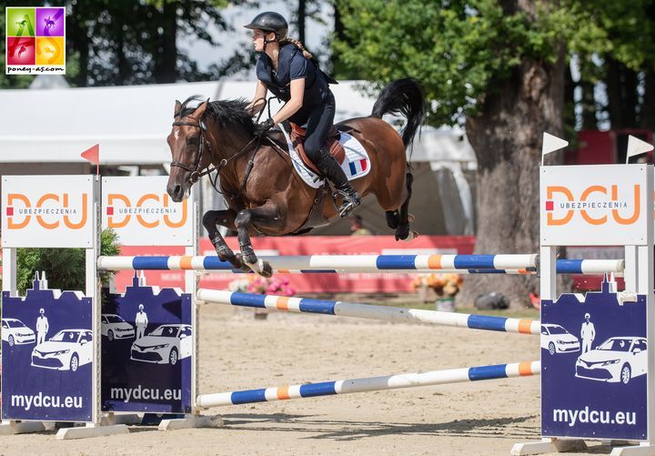 STRZEGOM – De Nederlandse ponyruiters deden het goed op het EK: teamzilver bij het springen, en teambrons bij de dressuur. Maar de beste NRPS-pony van het EK, Ken van Orchid  (v. Kanshebber), bezorgde Franrijk individueel zilver en teamgoud! Met zijn (nieuwe!) Franse amazone Marie Ann Sullivan heeft Ken van Orchid het hele EK geen springfout gemaakt. En dat zegt heel wat: inloopproef, eerste kwalificatie individueel, landenwedstrijd, en dan de individuele finale over twee omlopen – allemaal op de maximale hoogte, allemaal zonder springfouten. Jammer genoeg stond de tijd steeds vrij krap en noteerde de combinatie over al deze omlopen totaal 3 strafpunten voor tijdsoverschrijding. Anders waren ze ook nog Europees kampioen geworden, of hadden op zijn minst een barrage moeten rijden om het goud. Goud kregen ze wel met het Franse team! De 11-jarige Ken van Orchid is een zoon van NRPS-Boegbeeld Kanshebber uit de merrie Orchid’s Celestyi (v. Kantjes’s Ronald x Rusty, uit een New Forest merrielijn). Celestyi is ook de moeder van onder andere Orchid’s Sea Foam, internationale springpony met Meike Zwartjens, en drievoudig EK-pony (voor Duitsland) Karim van Orchid’s. Gefokt door Carla en Paul van der Laar uit Zeeland (NBr). Het Nederlandse springteam won zilver en dat is ook een topprestatie, die nog niet zo vaak is geleverd op een EK. Jammer genoeg was de bijdrage van de NRPS-geregistreerde, 19-jarige Special Lady en amazone Ava Eden van Grunsven hierbij niet de doorslaggevende. In de eerste proef bereikte deze combinatie de 16 e plaats, in de landenwedstrijd moest ze genoegen nemen met de 23 e plek. Dressuur Het dressuurteam behaalde, zoals vaker, brons na Duisland (1) en Denemarken (2). De goedgekeurde NRPS-hengst Don Davino Horsepoint en zijn net 14-jarige amazone Bridget Lock scoorden 70,286% in de landenproef en eindigden individueel op de 22 e plaats met 71,054%. Gezien het talent van de pas 9-jarige Don Davino, en het feit dat de amazone tijdens dit EK haar 14 e verjaardag vierde, is dit een heel mooi begin! Don Davino Horsepoint (v. Don Carino du Bois) is de enige nakomeling tot nu toe uit de EK-pony Queen of Daily (stamboeknaam Dailonka ster, prest.sport) v. FS Don’t Worry x Scapino BB ox, en hij werd gefokt door Harry Melis uit Gemert. Even verderop in de uitslag plaatste zich de voormalige NRPS-goedgekeurde hengst Schierensees Mithril (v. Schierensees Marillion) met zijn Zweedse amazone Laura Laustsen. Verder deed de 17-jarige Icarus van de Bulksehoeve (v. Isarco, m. ster v. Elegant x Troublemaker xx, fokker J.P.M. van de Laar uit Kerkdriel) mee voor Tsjechië, en dat was niet zijn eerste keer. Andere NRPS-pony’s Meervoudig EK-pony Winnetou bereikte in de eventing de tiende plaats met zijn Franse ruiter Valentin Quittet Eslan. De 15-jarige Winnetou (v. Wannahave) werd gefokt door Jaap Broers uit Randwijk uit zijn Connemara keurmerrie Rainy van de Kibboets (v. Marvel van Graaf Janshof, m. Snoopy van de Leliaard keur, preferent, prestatie-fok v. Calmore Dew). In het Britse team zat Sophie Evans met de NRPS’er Oscar van de Beekerheide , tot voor kort met veel succes uitgebracht door Emile Drent. Donderdag eindigden zij in de inloopproef 11 e , maar in de landenwedstrijd werden ze uitgebeld en zijn daarna niet meer gestart. De 11-jarige Oscar stamt van Orchard Floris uit de stermerrie Imara van de Beekerheide (v. Isarco, m. Coco Valrosa preferent, prestatie-fok; ook de moeder van o.a. de int. dressuurpony’s Navarone van de Beekerheide en Ico van de Beekerheide, en van tweevoudig hengstenmoeder Nina van de Beekerheide, de moeder van His Royal Badness DK en Madness DK). Oscar is goedgekeurd bij het EASP en van hem zijn ook bij het NRPS enkele nakomelingen geregistreerd. Fokker Jan van Beek, Maasbree. Orchid's  Anucia (v. Kanshebber) deed met Vic De Plecker mee voor België en eindigde op zaterdag als derde in de troostronde. De moeder van Anucia stamt van Cestanii of Orchid x Kantje’s Ronaldo uit een New Forest merrielijn. Fokkers Carla en Paul van der Laar uit Zeeland. (foto: Ken van Orchid, Poney-As)