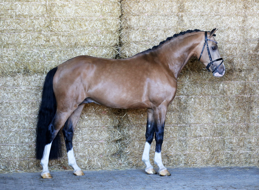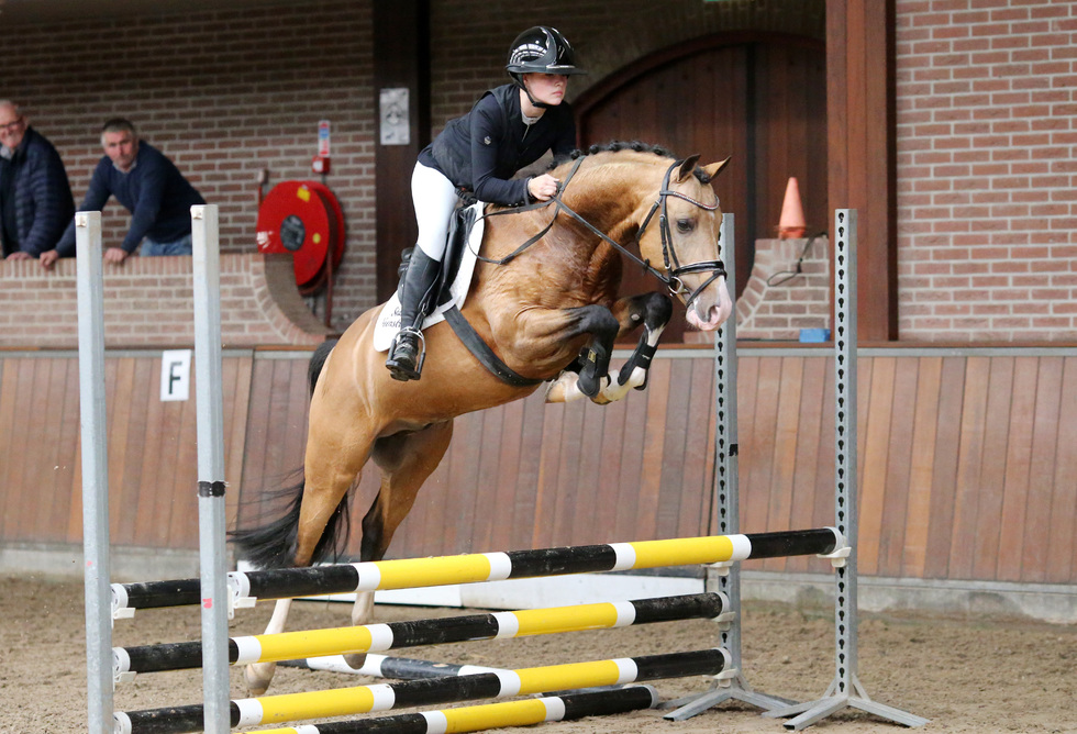 DRONTEN – Het Hengstengala begon afgelopen zaterdag met de derde bezichtiging en goedkeuring van alle ponyhengsten. Alle aanwezige hengsten kregen de goedkeuring en zijn uitgenodigd voor het verrichtingsonderzoek. In de fokrichting dressuur wees de commissie Cicero de Umme aan als kampioen. Hij werd door NRPS-voorzitter Gerard Schuttert gefokt met FS Champion de Luxe uit zijn merrie Noortje van de Beekerheide (v. Neptune van de Beekerheide), een vertegenwoordigster van de NRPS-Coco Valrosa merrielijn. Eigenaar van Cicero is Pronk Stables. Als reservekampioen mocht Coelenhage’s Chaplin opstellen, zoon van Leuns Veld’s Lord x Wengelo’s Ricardo die werd gefokt bij Stal Coelenhage en eigendom is van Stoeterij Turfhorst. Deze twee gaan verder door het leven als premiehengst. Twee andere hengsten werden ook uitgenodigd voor de kampioenskeuring en gehuldigd als premiehengst: Libenti’s Milagro (Strandgaards Mangold x Orchid’s Floris) van de Zweedse fokker/ eigenaar Libenti Handelsbolag, en FS Mr. Gold (FS Mr. Right x FS Numero Uno), fokker Ferienhof Stücker en eigenaar Laura Quint Dressage. Bij de allround pony’s ging de hoogste eer plus de premie naar Luxor (foto). De laatste zoon van de overleden Le Matsjo werd gefokt door Hans Melessen uit de NRPS-Jolanda merrielijn en is eigendom van Desiree Veenstra, die zelf Le Matsjo jarenlang succesvol in dressuur heeft uitgebracht en nu dolgelukkig is met deze waardige opvolger van haar grote vriend. De reservekampioen en premiehengst bij de allrounders was Oosterhoeve’s Wiseguy (Leuns Veld’s Winston Jr. x David van den Hout), fokker David Creemers en eigenaar Oosterhoeve Drouwenerveen. En de andere twee deelnemers aan de kampioenskeuring, die ook tot premiehengst werden bevorderd, zijn Heide’s Berg Milford (Nieuwmoed’s Milord x Nia Domo’s Bolero) en Isala’s White Fox (Leuns Veld’s Winston Jr. x Krimh ox). Milford werd gefokt door M.M.G. van Gerven en is eigendom van André Jurrius. Fokker/ eigenaar van Isala’s White Fox, de volle broer van de eerste goedgekeurde Isala’s White Gold, is Suzanne Miezgiel. Bij het NRPS zijn ook kleinere ponyhengsten welkom, zowel om de grootste ponymerries wat terug in de maat te fokken, als voor de fokkerij van kleinere kinderpony’s. Een kindvriendelijke instelling is hierbij dus een belangrijk selectiecriterium. Kampioen kleine maat werd de allround premiehengst Handsome Heartbreaker (Hulst Moonlight x Cal me Mr. Handsome) van fokker/ eigenaar Jikke ter Haar en mede-eigenaar Bruce Buyserd. Kampioen en premiehengst van de springpony’s is Devon Turfhorst (Daho du Paradis x Woldhoeve’s Silco). Fokker is W. van Klaarbergen van Stoeterij Orchard, en eigenaar Thom Koele van Stoeterij Turfhorst. Bij de ponyhengsten die afgelopen jaar met goed gevolg hun verrichtingsonderzoek hebben doorlopen, en aansprekende nakomelingen hebben laten zien, werden dressuurpony Geronimo Taonga (Golden West NRW x FS Don’t Worry) en allrounder Winton (Leuns Veld’s Winston Jr. x Compagnon’s Humphrey) nu uitgeroepen tot Kampioen Jonge Hengsten. Leuns Veld’s Winston Jr. is bij de pony’s trouwens de vader met de meeste inbreng op deze keuring, want verder werden naast de reservekampioen Oosterhoeve’s Wiseguy en de 4-jarige premiehengst Isala’s White Fox ook nog twee 3-jarige zonen van hem goedgekeurd. Naast de derde bezichtiging en goedkeuring van de jonge ponyhengsten aan de hand, kwam ook een aantal oudere en bewegen sportpony’s naar het Flevodrome om onder het zadel aansprekende demonstraties te geven. Onder andere de EK-springpony Zeppe van de IJsseldijk (Zodiak x Boyco, NRPS-Minouche merrielijn), de FEI springpony Kwaliteit van Orchid’s (in de sport ook bekend als Orchid’s Lambada, Kanshebber x Kantje’s Ronaldo), de ervaren Reekamp’s Slogan (Wayland Loganberry x Melle Jerom), de zeer veel belovende 6-jarige Cocacola (Coelenhage’s Purioso x Heidehof’s Hero), en enkele jongere hengsten die het onder het zadel al heel goed doen: Cappuccino van Paemel (Casall ASK x Darco), Hania’s Memphis (Jonkers’Jayden x Wengelo’s Ricardo) en Kantje’s Post Men (Kantje’s Lester x Kantje’s Carter). Bij de dressuurpony’s kwamen vijf 4-jarige hengsten onder het zadel in de baan, hengsten die we komend najaar terug zullen zien in het verrichtingsonderzoek: Cosmo’s Paradiso Emelwerth (Cosmo Callidus NRW x Orchard Red Prince), HRB Jupiter JV (His Royal Badness DK x Klein Roderijs Cocktail), Le Golden Gambler RW (Le Matsjo x Gomel ox), O’Atje A.T. HSL RM (Oosting Alexander x Goldstar du Bois) en Macho ZH (Trinityhouse Perfect Storm x First Stayerhof’s Ramzi H). En dan volgde er nog een aansprekend optreden onder het zadel van de 6-jarige Isala’s White Gold en Jay Magnifico A.B. (Jonkers’Jayden x Veenstra’s Promise), en de vijfjarige Ducati du Bois (Diamond Touch NRW x Der Harlekin B) en Davinci du Bois (Diamond Touch NRW x Don Carino du Bois). De complete lijst met goedgekeurde ponyhengsten:  Dressuur Kampioen Cicero de Umme (2021 FS Champion de Luxe x Neptune van de Beekerheide) D' Michael H2K (2021 Ducati du Bois x Burgthoeve’s Isarco) Jupiter (2021 Jonkers' Jayden x Klein Roderijs Cocktail) Friedrichshof Kents Diamond (2021 Kent Nagano x Double Diamond AK) Krack's Palladin (2021 Veenstra's Krack x Le Matsjo) Premiehengst Libenti's Milagro (2021 Strandgaards Mangold x Orchid’s Floris) Premiehengst FS Mr. Gold (2021 FS Mr. Right x FS Numero Uno) Reservekampioen Coelenhage's Chaplin (2020 Leuns Veld's Lord x Wengelo’s Ricardo) Goldwin's Hoeve's Dreamy (2021 Davinci du Bois x Cassanova du Bois) Jupiler’s Red Bull S (2021 Spoorzicht's Jupiler x Veenstra’s Grapjas) Nadal DMV (2021 Neptune van de Beekerheide x Leuns Veld’s Winston) Allround Koningshoek Diamond’s Touch of Gold (2021 Davinci du Bois x Leuns Veld’s Winston) Handsome Heartbreaker (2021 Hulst Moonlight x Call me Mister Handsome) King Georgio FE (2021 Heidepeel's King George x Heidepeel’s Constantijn) Veens