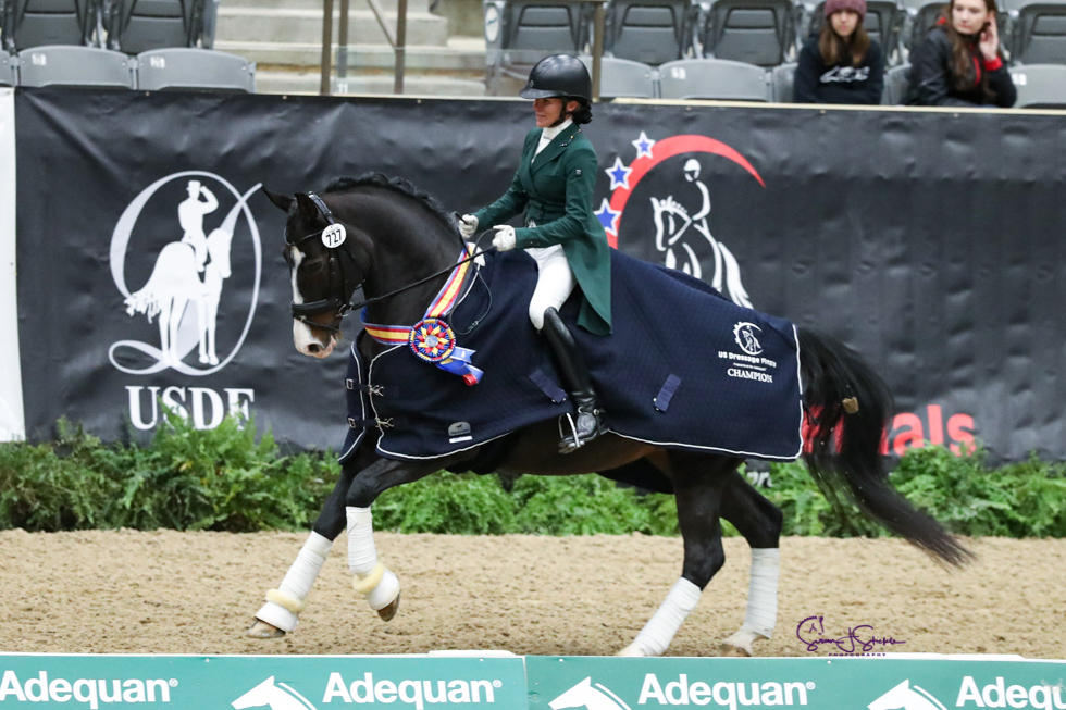 LEXINGTON - Rita Mae Johnson is een 14-jarige dressuurmerrie, gefokt in de Verenigde Staten door Babsi Neidhardt-Clark en als veulen ingeschreven bij het NRPS. Met haar eigenaresse en amazone Kristen Ortt won ze op de finaledag van de 2022 US Dressage Finals tweemaal goud op Prix St.-Georges niveau. Aan deze competitie doen meer dan 500 combinaties mee van basisport tot int. Grand Prix. Daarbij zijn in vier dagen tijd 35 kampioentitels te winnen.