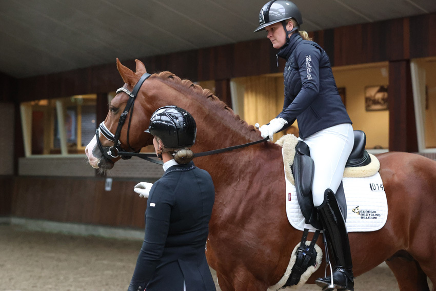 LUNTEREN – Gisteren zijn dertien hengsten door de commissie geïnspecteerd tijdens de inhaaldag van het verrichtingsonderzoek. Zij hadden om verschillende redenen een beoordeling gemist en konden dit op 3 januari ‘goedmaken’. Hengsten die de derde beoordeling niet aanwezig waren, kregen nu alsnog de kans zich te bewijzen onder het zadel van de gastamazone Emma van den Hooven (op de foto met Le Rockstar en Saskia Poel).