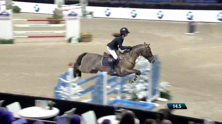 MECHELEN - In de Grote Prijs voor pony's (1.35m) van het internationale eindejaars springconcours is KOSMO VAN ORCHID'S (v. Kanshebber) met zijn Ierse amazone Caragh Charlton als tweede geëindigd.