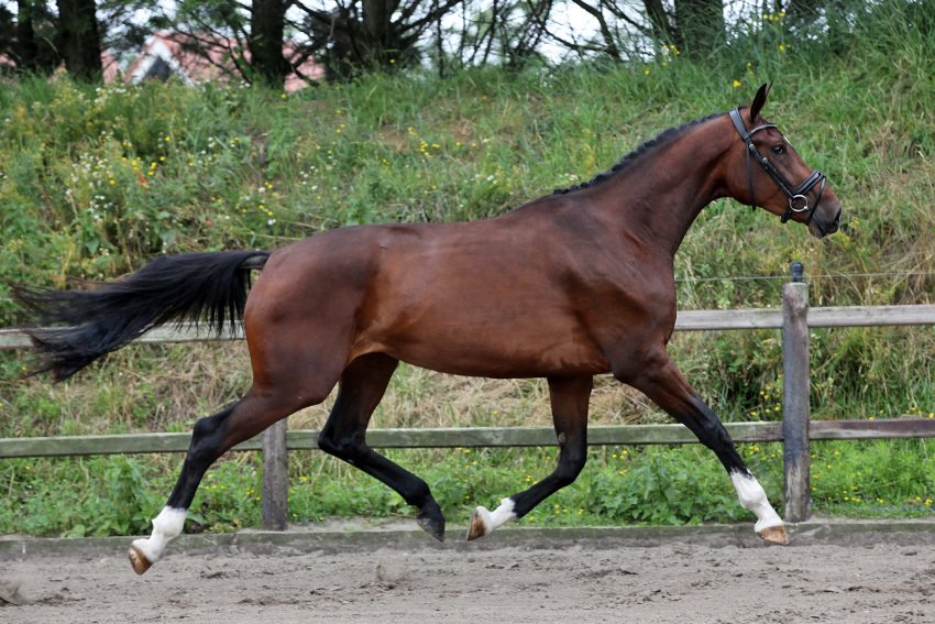 Filly van de Mariskahoeve (Fürst Dior x Kosmonaut van Klaverborch), fokker/eigenaar Mariska Ponse, Poortvliet.