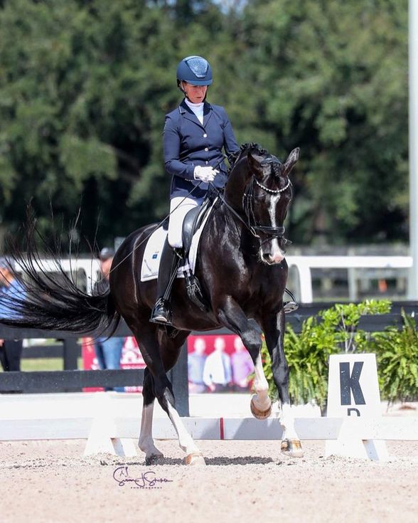 De NRPS verrichtingstopper van 2021 Hexagon's Georgeous Latino (Glock’s Toto Jr. uit de NRPS-merrie Blackmanda v. Rubiquil) werd begin vorig jaar door fokker Leunus van Lieren naar de Verenigde Staten verkocht. Zijn nieuwe eigenaresse Sandy Mancini zette de hengst in training bij de Olympische amazone Sabine Schut-Kery, en onder haar verzamelt de hengst nu linten in Wellington.